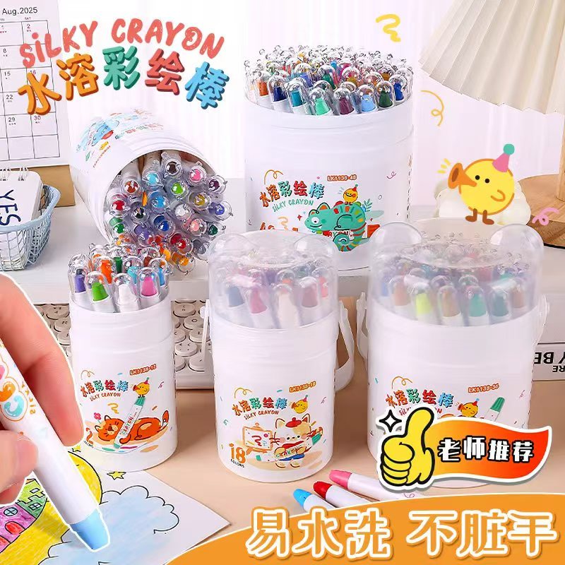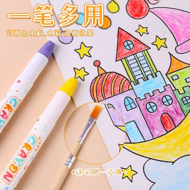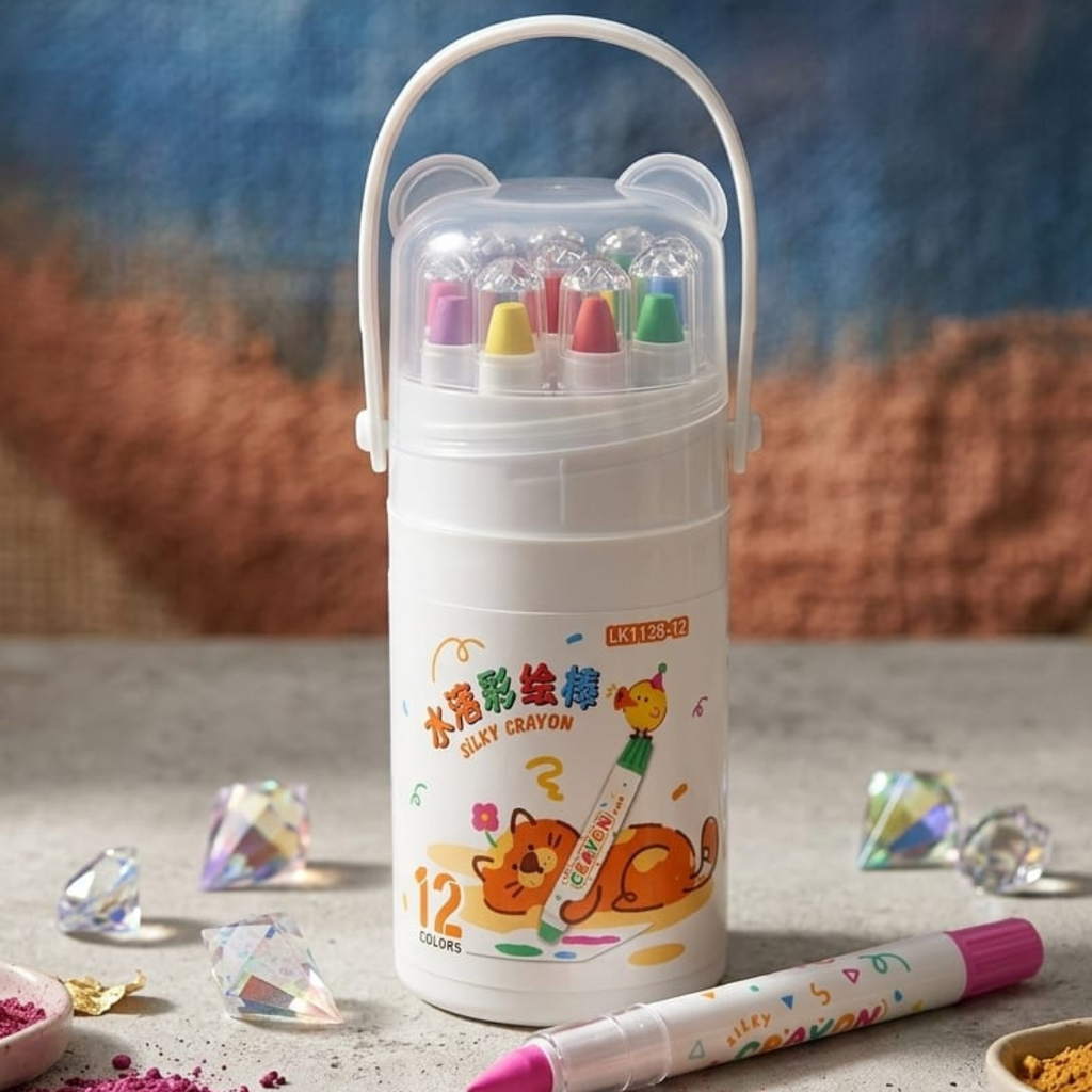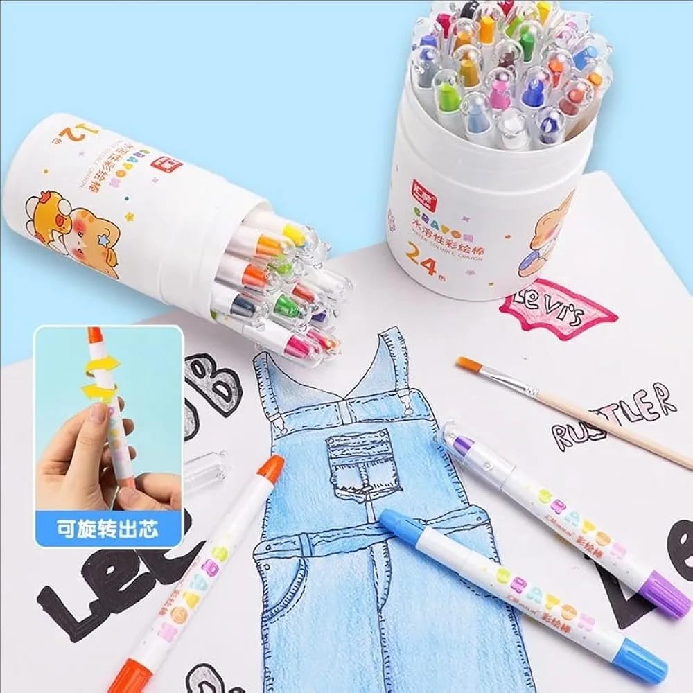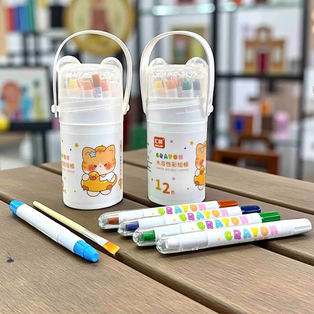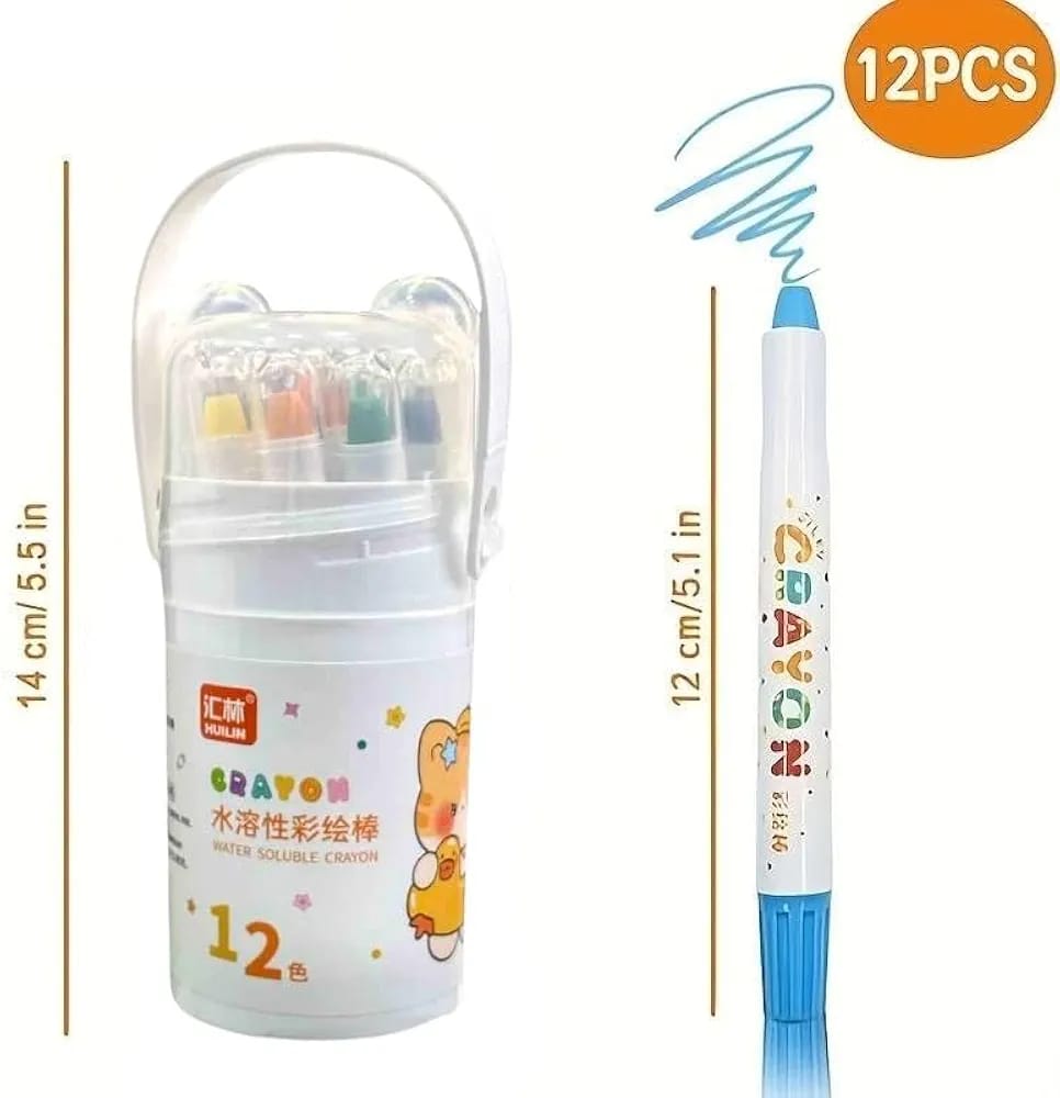 This crayon set is specially designed for children and professionals combining safety, creativity, and fun. The set includes 12,24,36 & 48 vibrant crayons and a water-dip brush. Made from non-toxic, eco-friendly materials. The crayons are easily washable from skin, clothes, or furniture with just a wet cloth or mild detergent. The design is perfect for little hands, promoting fine motor skills and early artistic expression. The smooth, silky texture makes coloring a joy.