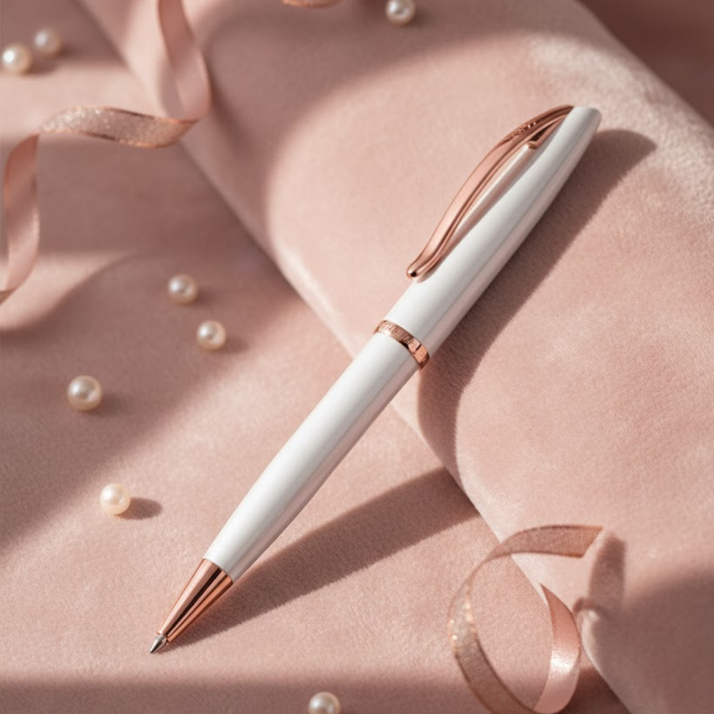 The elegant Jazz metal ballpoint pen is characterized by its curved lines, which makes the pen light and lively. The pearl lacquered upper and lower barrel perfectly harmonize with the tone in tone colored tip, ring and clip. The typical Pelikan beak shaped clip is spring-loaded and therefore particularly robust. The ballpoint pen with twist mechanism is equipped with a king-size refill and includes a blue colored and in Pelikan Jazz Noble K36 Pearl RGT Ballpoint Pen 821629accordance with ISO 12757-2 document-proof ink.