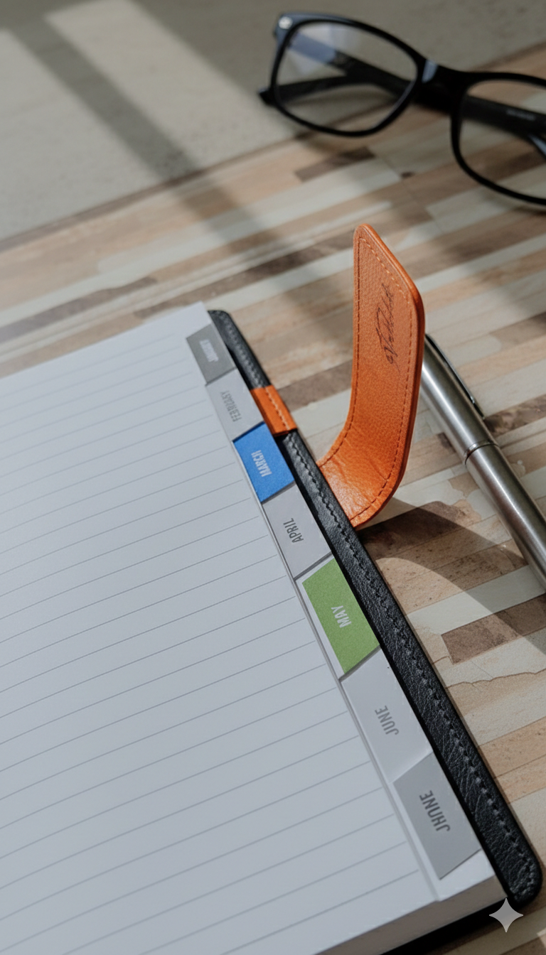 The Diary Plain Big features a practical layout with no specific dates, allowing flexible use throughout the year. Each month is separated with 33 high-quality, blank pages for versatile note-taking. Its durable leather foamic cover ensures longevity, while various design options cater to individual preferences.