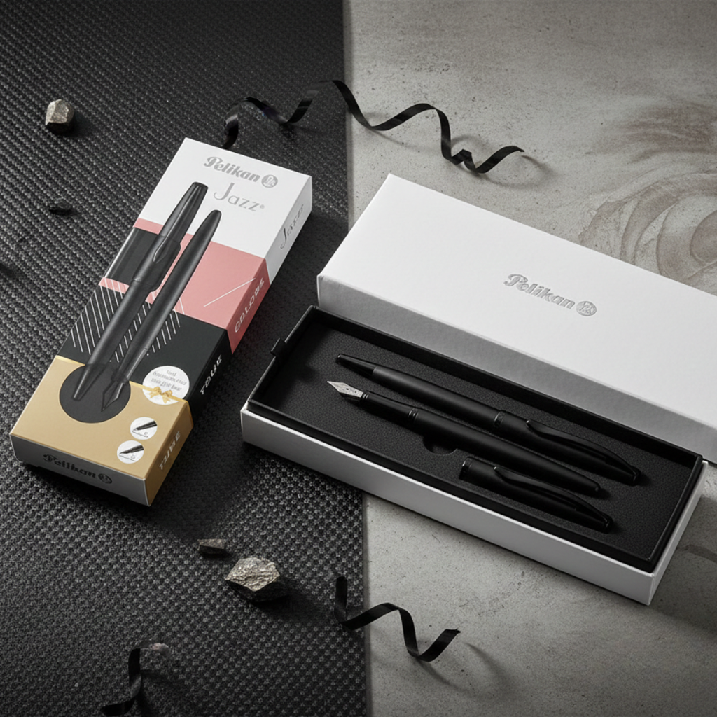 Elevate your writing experience with the Jazz Pearl Classic Gift Set, featuring a ballpoint and fountain pen crafted in Germany. Both pens showcase a pearlescent white lacquer finish accented by elegant rose gold trim. The spring-loaded clip ensures secure attachment, combining functionality with refined style. Presented in a Pelikan gift box, this set is an ideal choice for discerning professionals and collectors seeking timeless sophistication.